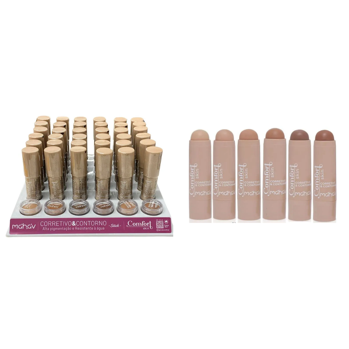 CORRETIVO & CONTORNO CONFORT SKIN STICK MAHAV CX 36 PÇS