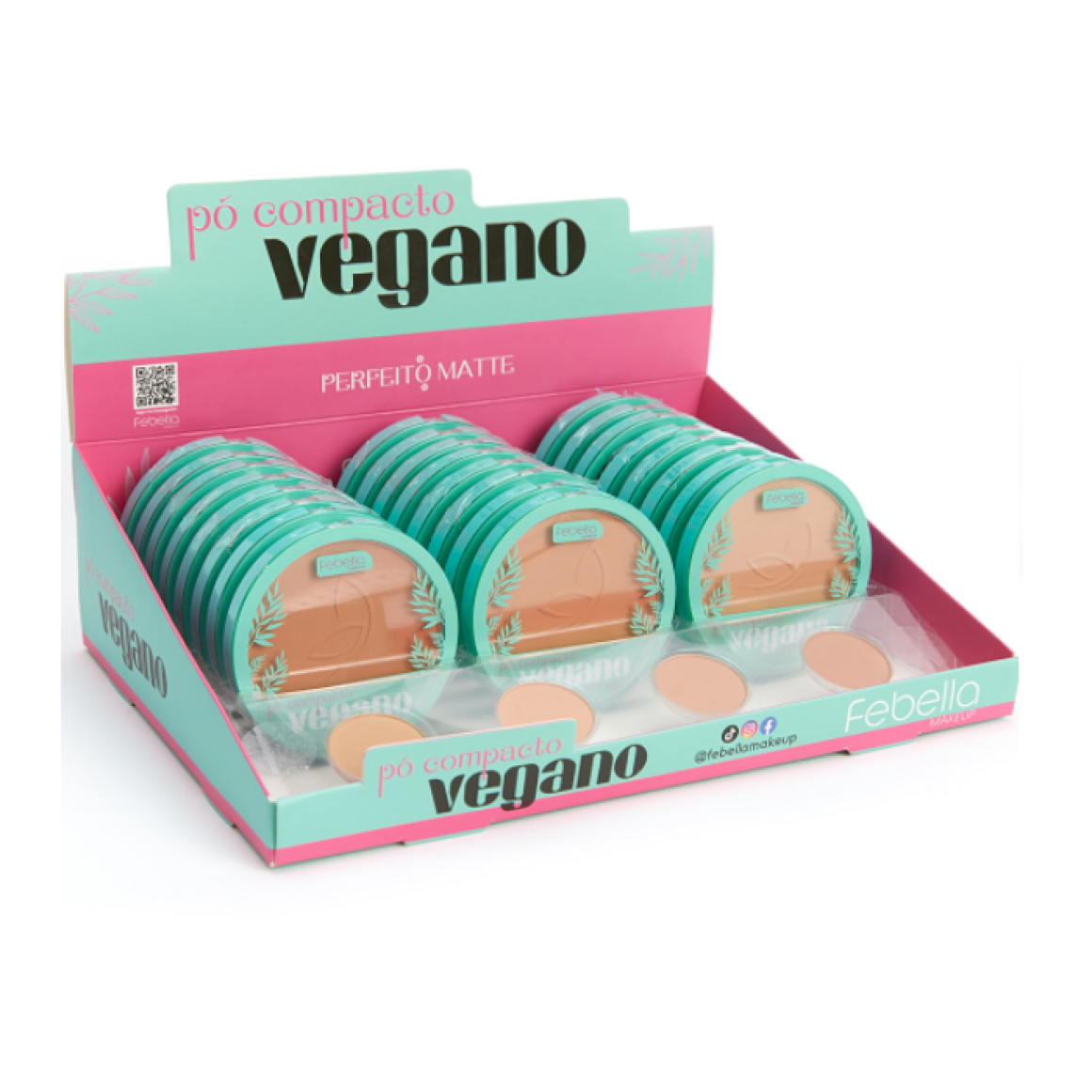 PÓ COMPACTO VEGANO PERFEITO MATTE FEBELLA CX 24 PÇS