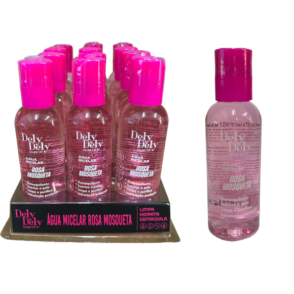 Descrição: Com formulação suave, água micelar Rosa Mosqueta dely dely make up, remova a maquiagem, inclusive sem deixar resíduos oleosos, mantendo a pele limpa e hidratada. Toque seco.