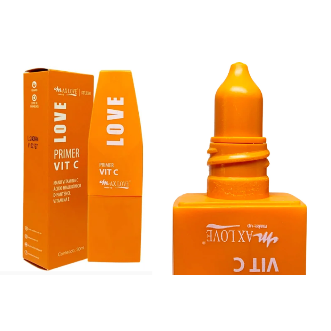 Descrição: O Primer VIT C Max Love com Ácido Hialurônico é indicado para todos os tipos de pele, é um excelente uniformizador pré-maquiagem enriquecido com os benefícios da Nanotecnologia! Este diferencial permite que os ativos tenham maior poder de penetração cutânea e incremento do sensorial, tem como multifuncionalidade e alta hidratação.