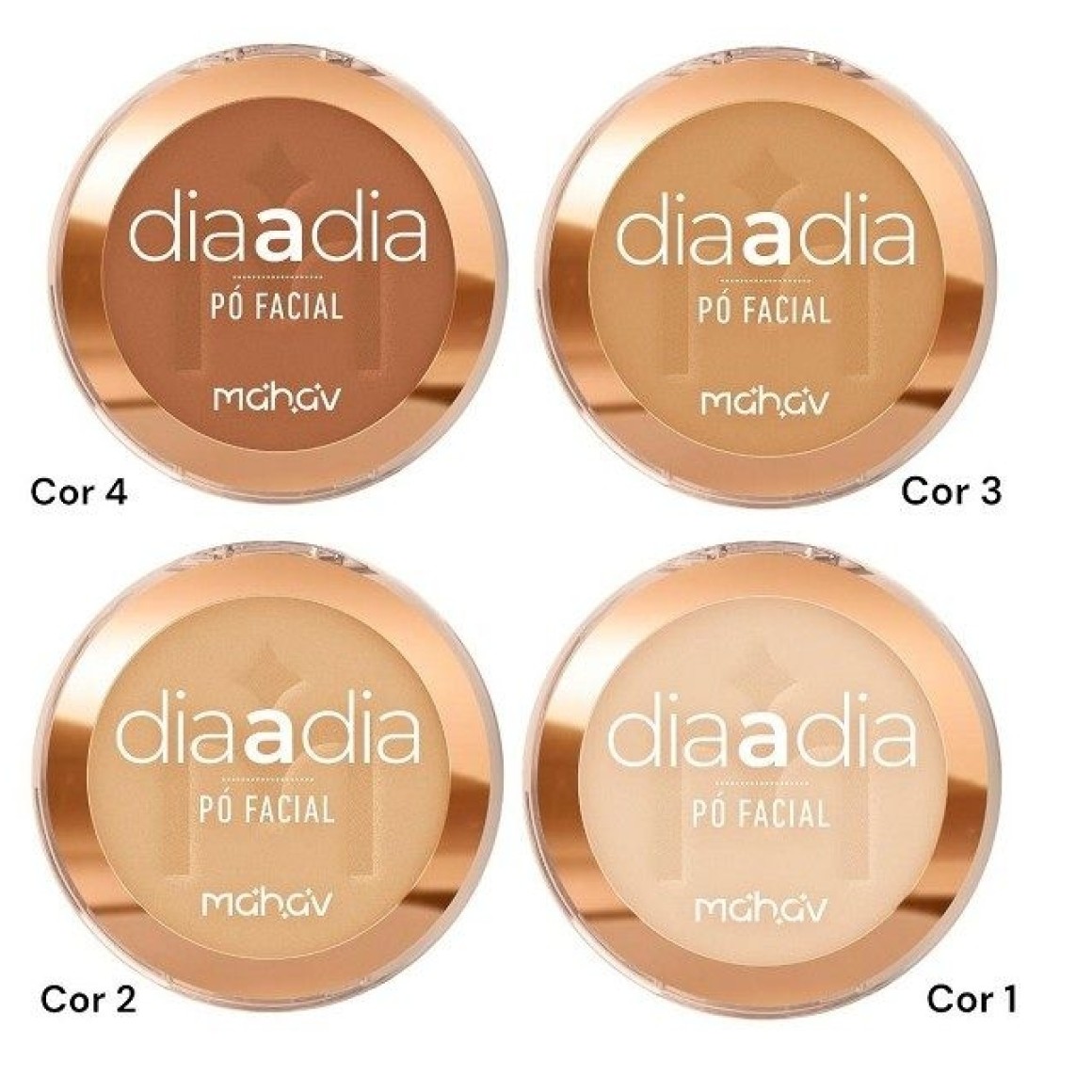 Descrição: A Mahav é a Rainha dos Pós! Formulados com ótimas matérias-primas que não deixam o aspecto de pele envelhecida. O PÓ FACIAL COMPACTO DIA A DIA MAHAV foi desenvolvido com um sistema de alta micronização, que promove um pó fino, com textura delicada, que uniformiza, matifica e sela a maquiagem com uma cobertura natural, além do toque seco e aveludado. É o produto perfeito para socorrer a pele, no tom certo e sem brilho.