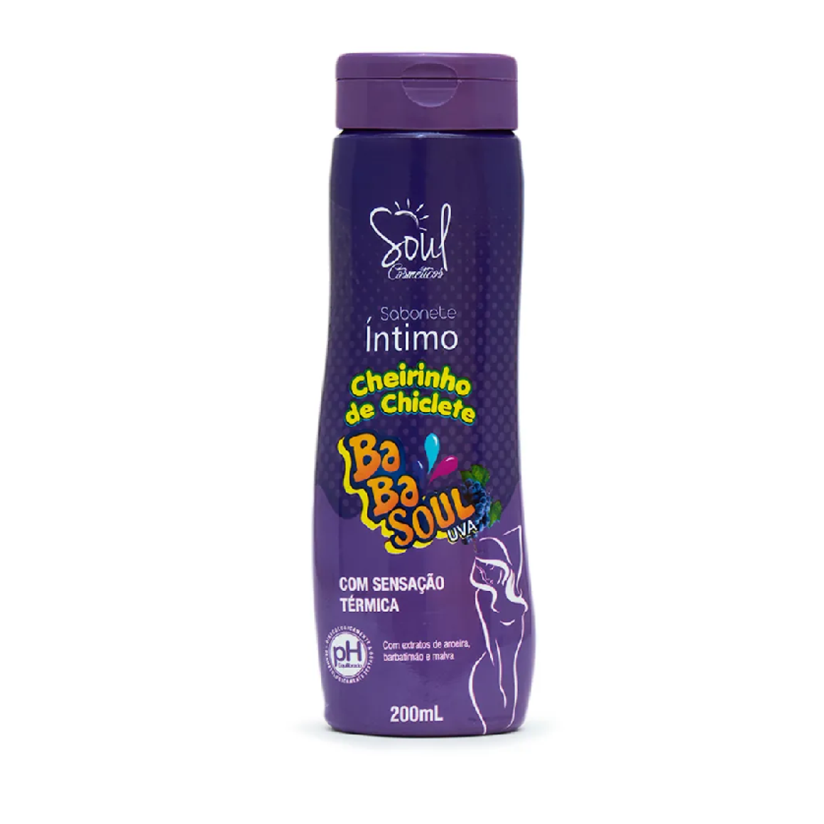 Descrição: O Sabonete Íntimo Cheirinho de Chiclete BabaSoul Uva 200ml foi especialmente desenvovido para a higiene íntima e diária. Sua fórmula suave possui extratos naturais (aroeira, barbatimão e malva) que oferecem cuidado para a pele delicada da região íntima, preporcionando uma agradável sensação de limpeza, segurança e bem estar.