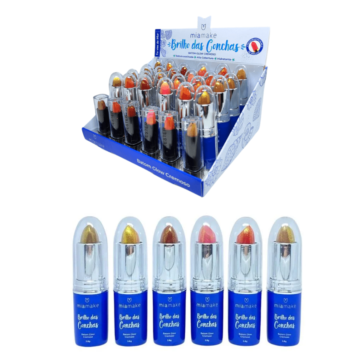 BATOM GLOW CREMOSO BRILHO DAS CONCHAS MIA MAKE CX 24 PÇS