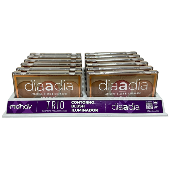Descrição: A versatilidade da Paleta Trio Contorno Blush Iluminador Mahav é perfeita para criar looks incríveis com praticidade e sofisticação. Composta por três produtos essenciais - iluminador, contorno e blush – a paleta 3 em 1 é completa e multifuncional, pois acopla as funções básicas da maquiagem combinando os efeitos de iluminação, sombra e ruborização com facilidade, praticidade e precisão, além disso todos os itens da paleta podem ser utilizados como sombra.