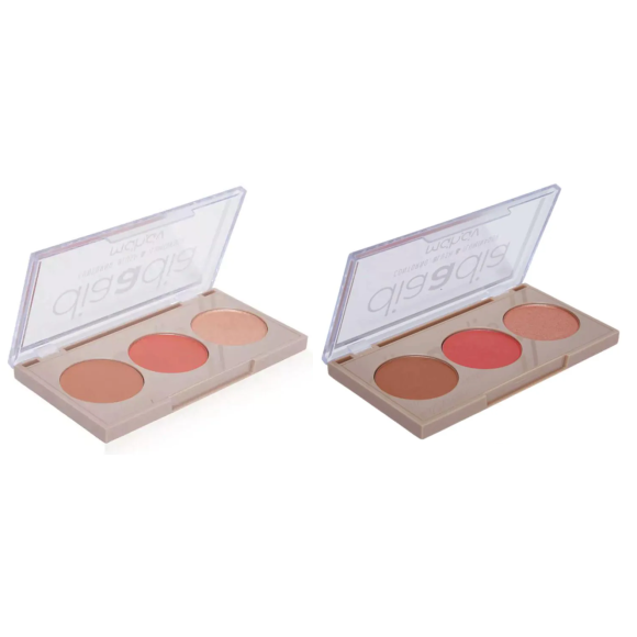 Conteúdo: 10,5gDescrição: A versatilidade da Paleta Trio Contorno Blush Iluminador Mahav é perfeita para criar looks incríveis com praticidade e sofisticação. Composta por três produtos essenciais - iluminador, contorno e blush – a paleta 3 em 1 é completa e multifuncional, pois acopla as funções básicas da maquiagem combinando os efeitos de iluminação, sombra e ruborização com facilidade, praticidade e precisão, além disso todos os itens da paleta podem ser utilizados como sombra.