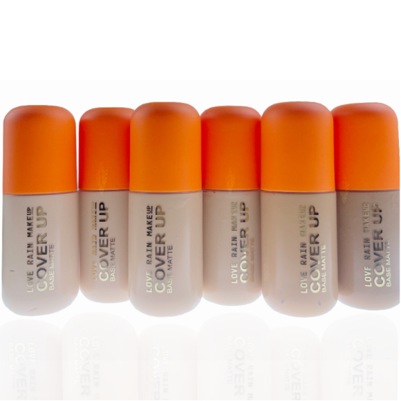 Descrição: A base LOVE RAIN deixa a pele macia, uniforme e sem rachaduras, com cobertura ajustável de média a alta. Impermeável, à prova de suor e sem óleo, não acumula nos poros e seca rapidamente. Com pigmentos revestidos por aminoácidos, disfarça marcas, manchas, cicatrizes e olheiras, garantindo um acabamento fosco, natural e duradouro. Sua fórmula leve e respirável proporciona sensação aveludada, minimizando poros com foco suave e luminoso.