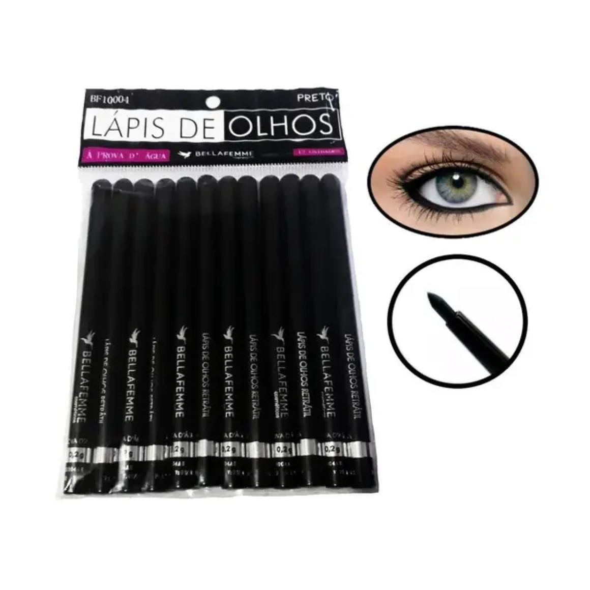 Descrição: O Lápis de Olho Preto Retrátil da Bella Femme possui uma textura macia e ótima fixação. É prático e perfeito para delinear os olhos, além de possuir uma pigmentação resistente à água.