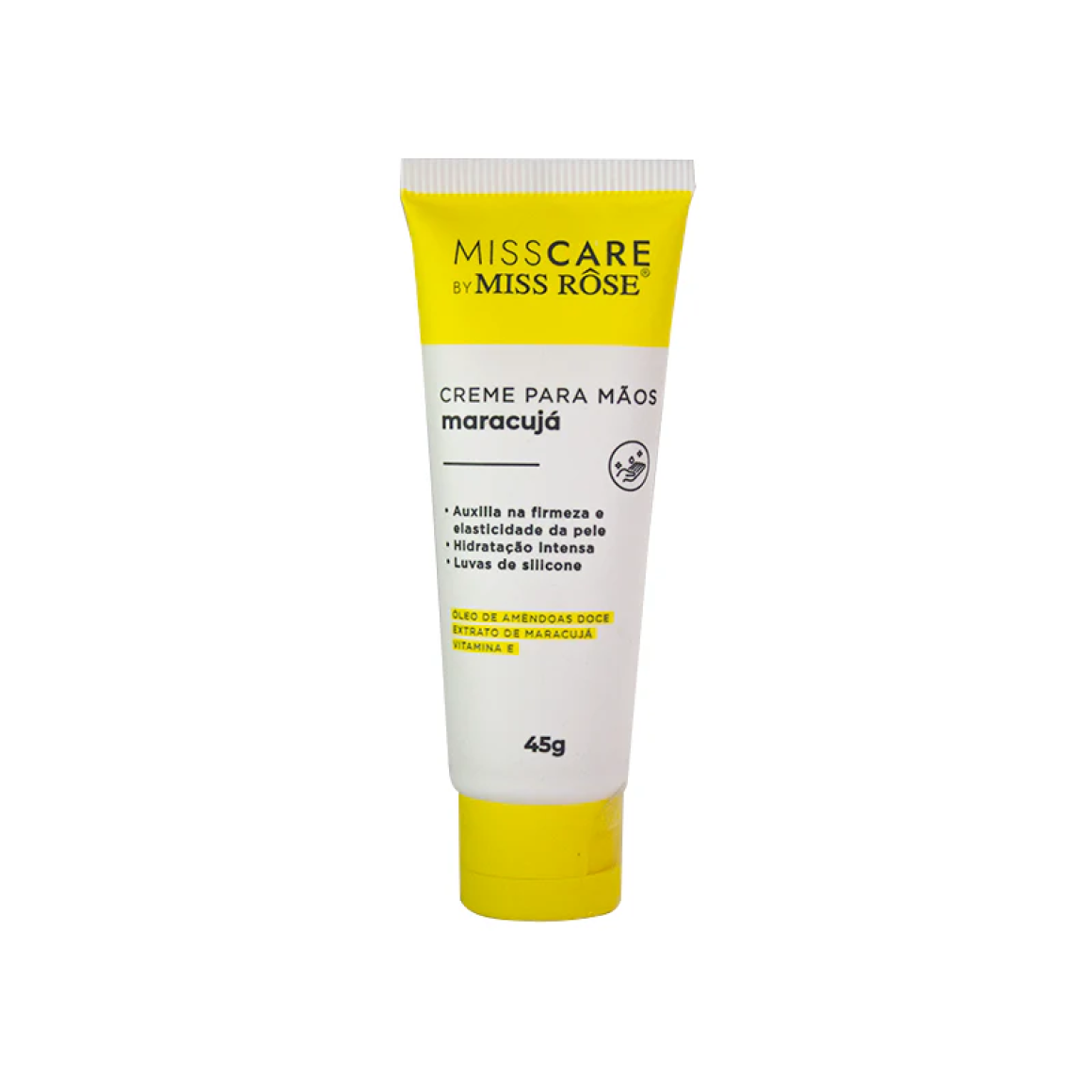 Modo de usar: Aplique uma quantidade generosa do Creme Para as Mãos de Maracujá Miss Rôse nas mãos limpas e secas. Massageie até total absorção, focando nas áreas mais ressecadas e ásperas. Pode ser usado diariamente, especialmente à noite, para um cuidado intenso.