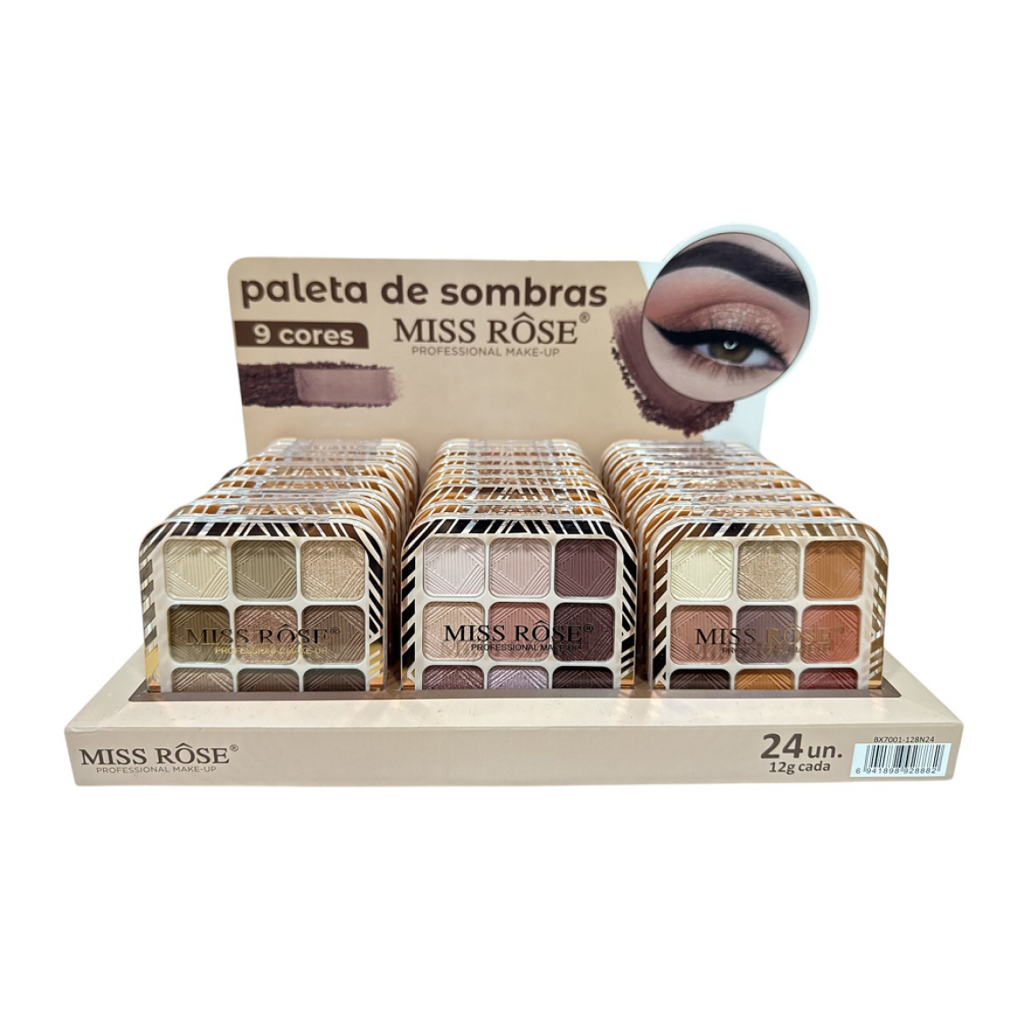 PALETA DE SOMBRAS 9 CORES MISS ROSE CX 24 PÇS
