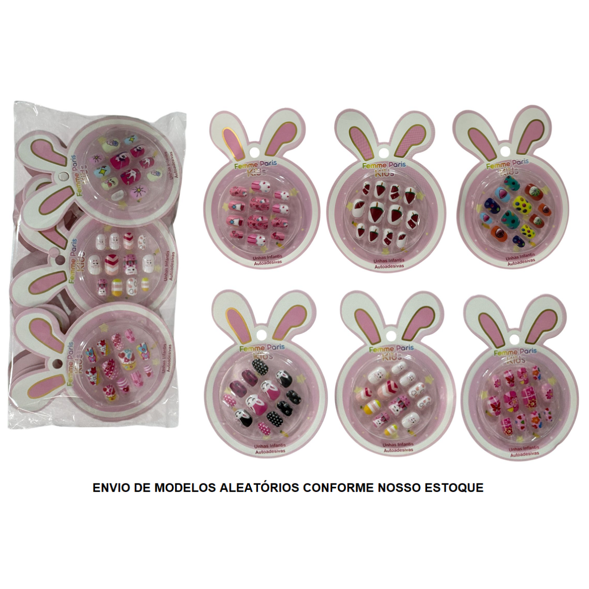 UNHAS POSTIÇAS INFANTIL FEMME PARIS KIDS PCT 12 PÇS