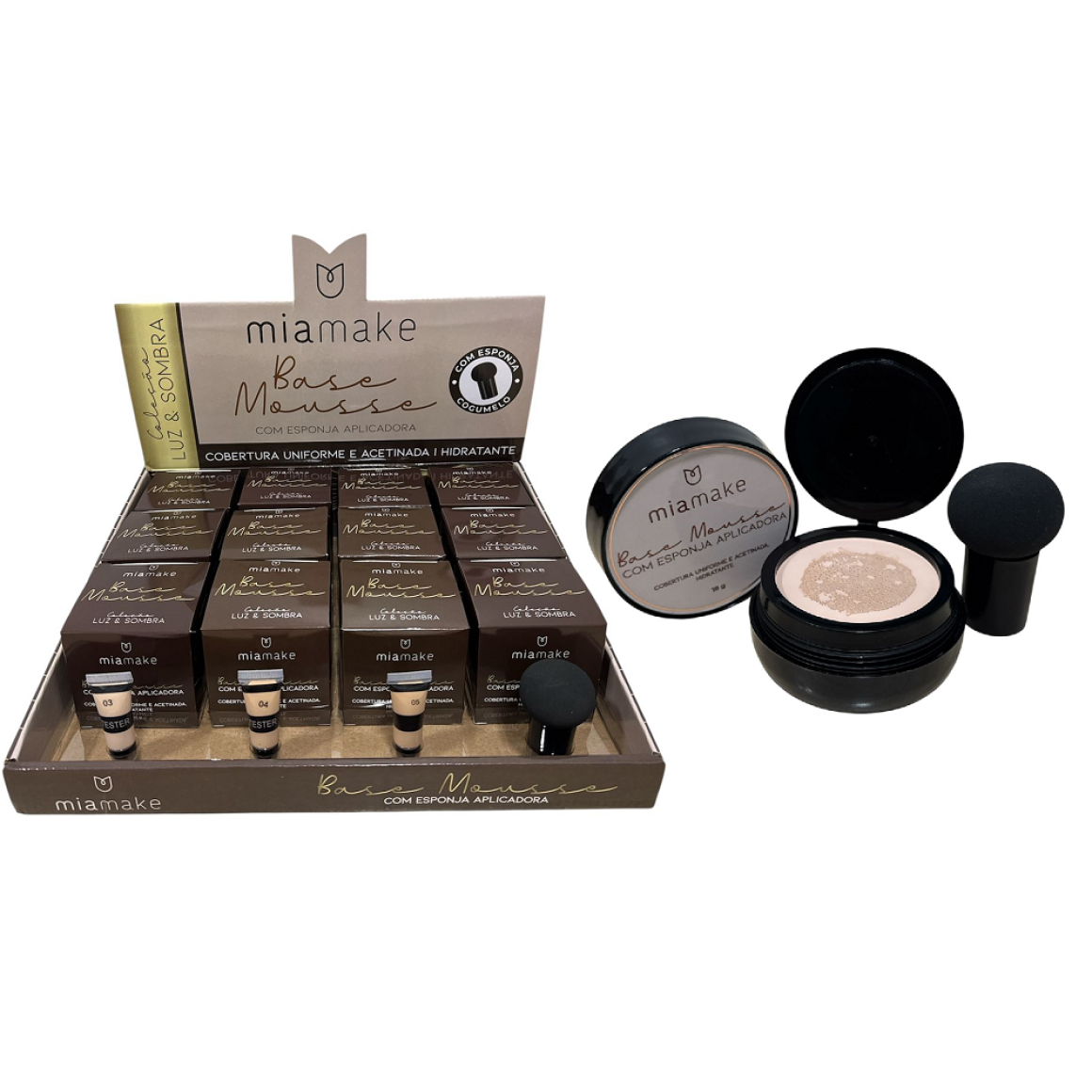 BASE MOUSSE COLEÇÃO LUZ E SOMBRA MIA MAKE CX 12 PÇS
