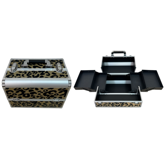 Descrição: Uso profissional e pessoal; Para guarda e transporte de maquiagens, bijuterias, joias e acessórios; Acessório que não pode faltar para os maquiadores; Design e estampa modernos; Lindo acabamento com perfis de alumínio; Fechadura com 2 chaves (1 reserva);