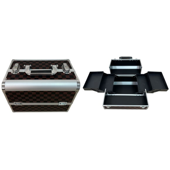 Descrição: Uso profissional e pessoal; Para guarda e transporte de maquiagens, bijuterias, joias e acessórios; Acessório que não pode faltar para os maquiadores; Design e estampa modernos; Lindo acabamento com perfis de alumínio; Fechadura com 2 chaves (1 reserva);