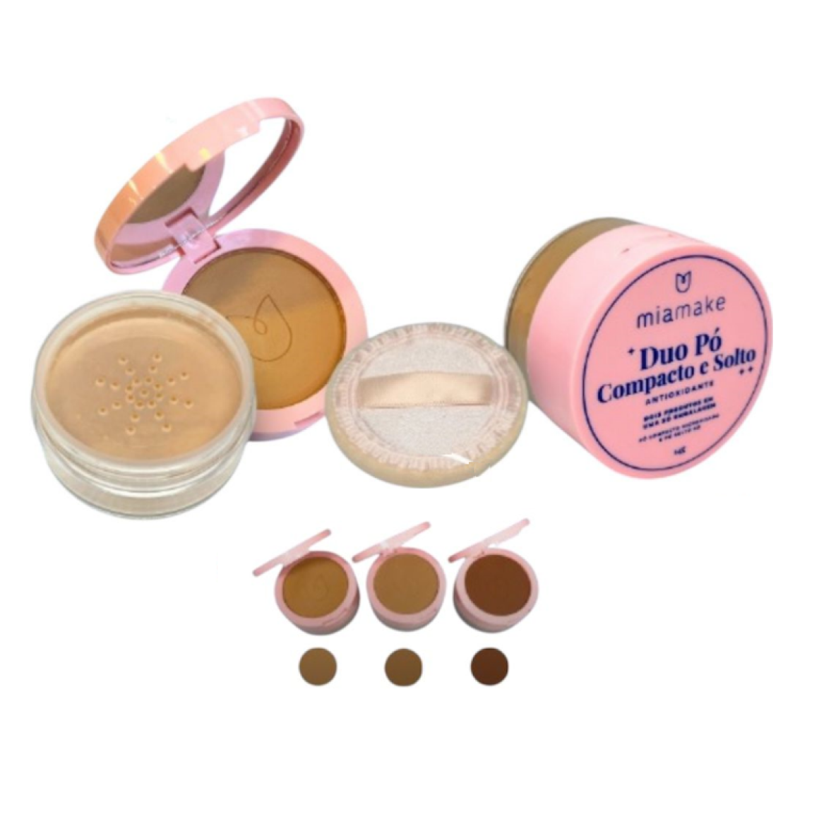 3 UNDS DUO PÓ COMPACTO E SOLTO ANTIOXIDANTE MIA MAKE