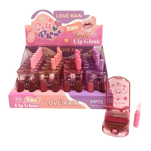 LIP GLOSS 2 EM 1 TELEFONE SMILE LOVE RAIN CX 24 PÇS