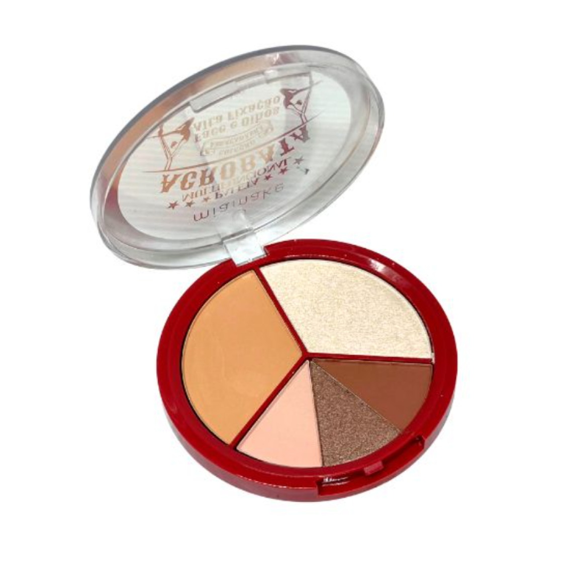 Descrição: A Paleta Acrobata é a multifuncional que entrega tudo! Com alta fixação, ela reúne contorno, iluminador e sombras em tons versáteis para transformar qualquer look. Ideal para esculpir o rosto e destacar os olhos, sua textura macia facilita a aplicação e o esfumado.