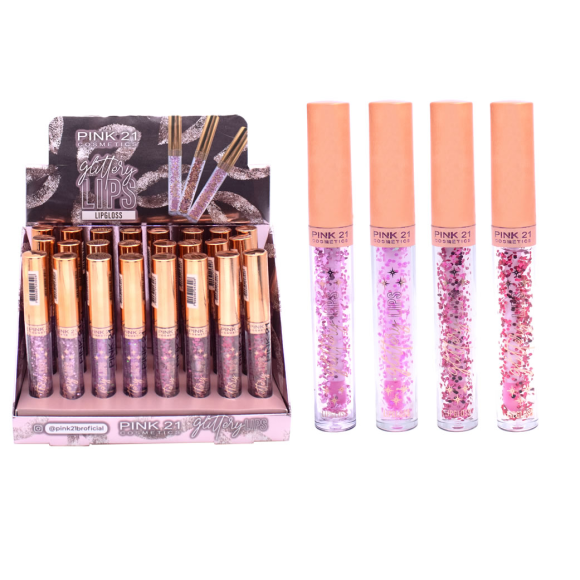 LIP GLOSS GLITTERY LIPS PINK 21 CX 24 PÇS