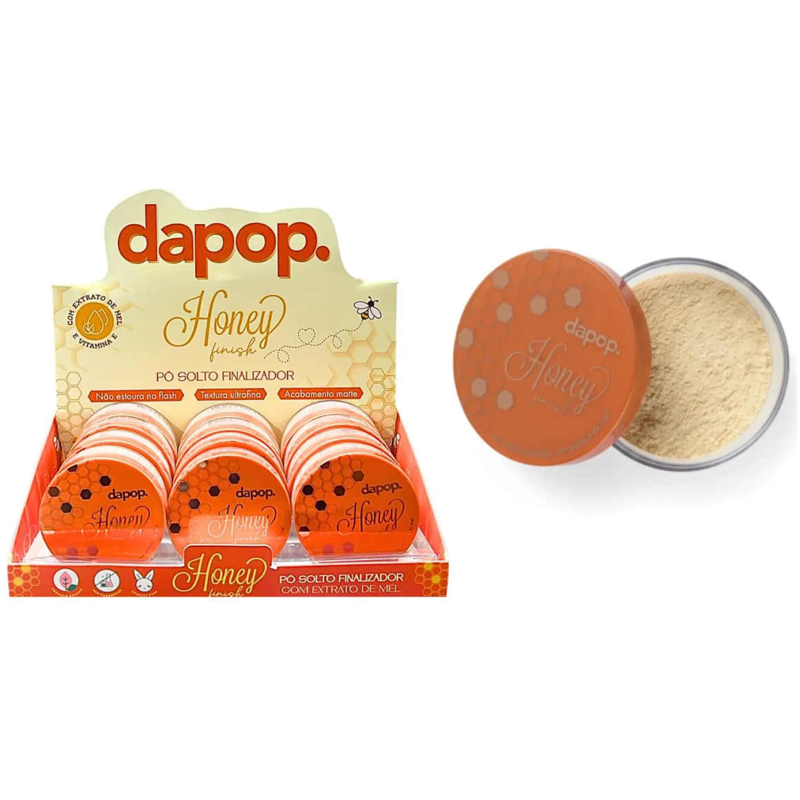 Descrição: O Pó Solto Honey Finish Dapop é um finalizador de maquiagem que proporciona um acabamento suave e radiante, enriquecido com extrato de mel para uma pele iluminada e saudável.