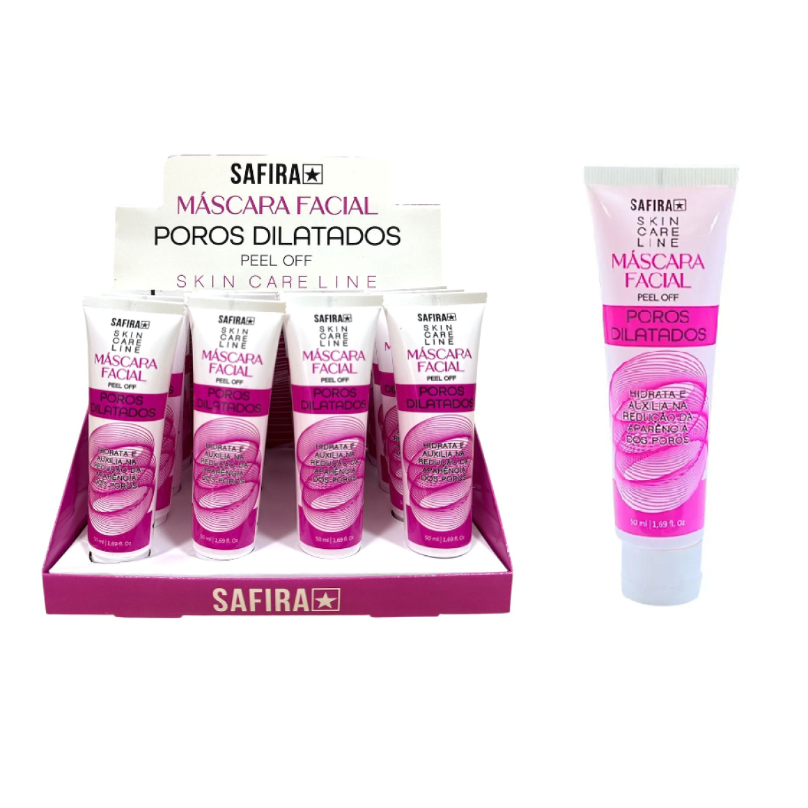 Descrição: A Máscara Facial Peel Off Poros Dilatados Safira é um produto que limpa a pele profundamente, renova, ilumina e combate os sinais de envelhecimento, segundo a Safira Cosméticos. É ideal para melhorar a uniformidade e o tom da pele, além de proporcionar hidratação.
