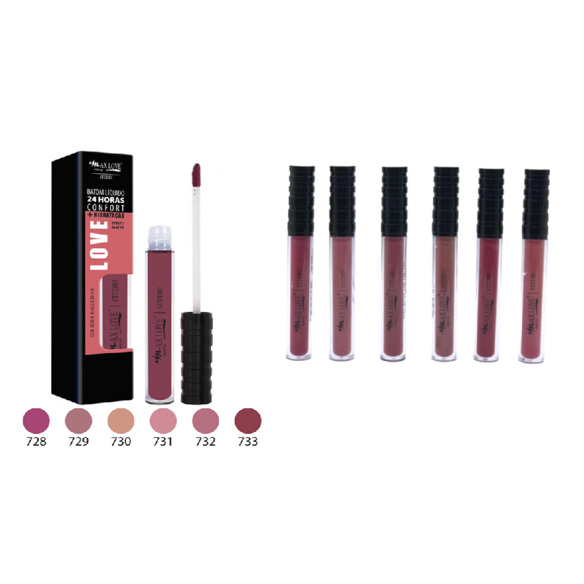 Descrição: O Batom Líquido 24 Horas Confort + Hidratação Max Love, combina a fixação e acabamento matte do batom líquido 24 horas, com a hidratação e o conforto de um batom cremoso em um único produto. Sua fórmula com Ácido Hialurônico, hidrata os lábios e sua textura permanece levemente maleável após a secagem, para acompanhar o movimento da pele dos lábios, evitando craquelamento.