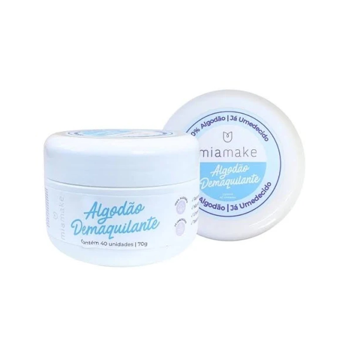 Descrição: O Algodão Demaquilante Mia Make é um disco de algodão já umedecido, macio e com alta absorção, ideal para remover maquiagem e impurezas de forma suave e prática. Ele é formulado para facilitar a limpeza facial, deixando a pele confortável e eficazmente limpa.