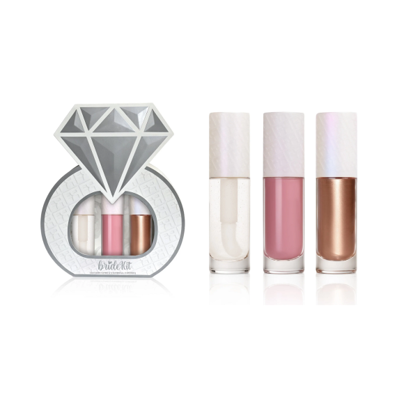 Descrição: O Bride Kit da Franciny Ehlke é uma edição limitada de maquiagem inspirada nos produtos que ela usou no dia do seu casamento, focando em brilho, romantismo e durabilidade, e inclui o Lip Bride (gloss transparente com aroma de limão siciliano), o Blush Bride (rosa matte multifuncional) e o Shine Bride (iluminador acetinado dourado), todos com fórmulas veganas, cruelty-free e livres de parabenos, para um glow natural e duradouro.