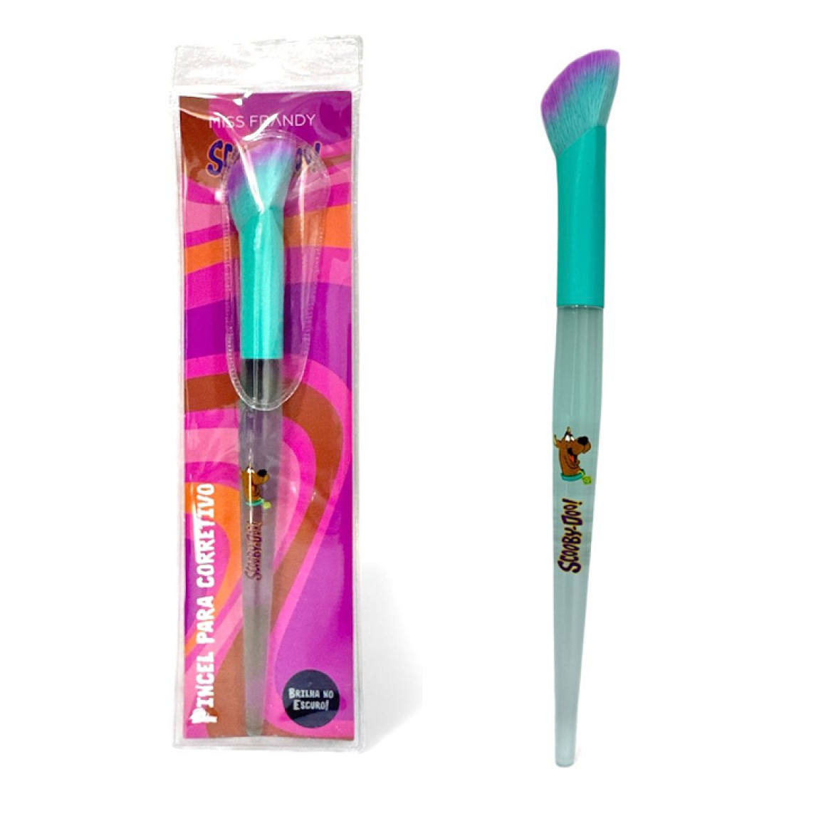 Descrição: O Pincel para corretivo da linha Scooby-Doo Miss Frandy é um pincel multifuncional de edição limitada, conhecido por suas cerdas macias e por ter a característica especial de brilhar no escuro.