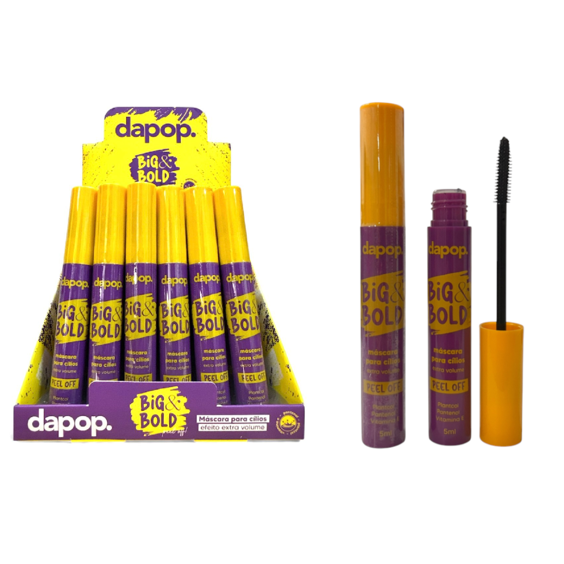 Descrição: A Máscara de Cílios Big & Bold da Dapop é um produto que promete um olhar impactante, volumoso, alongado e definido, com um aplicador que entrega volume intenso e fios bem separados, sendo ideal para efeito "cílios de boneca" ou até de postiço, com boa durabilidade e aplicação em camadas para intensificar o efeito.