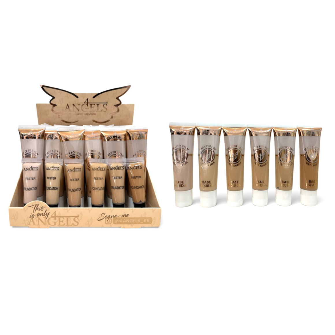 Descrição: A Base Líquida Matte da 4 Angels é um produto versátil e prático, ideal para quem busca um acabamento impecável e duradouro. Com uma fórmula leve e de alta cobertura, ela proporciona um aspecto natural e controla o brilho da pele ao longo do dia.