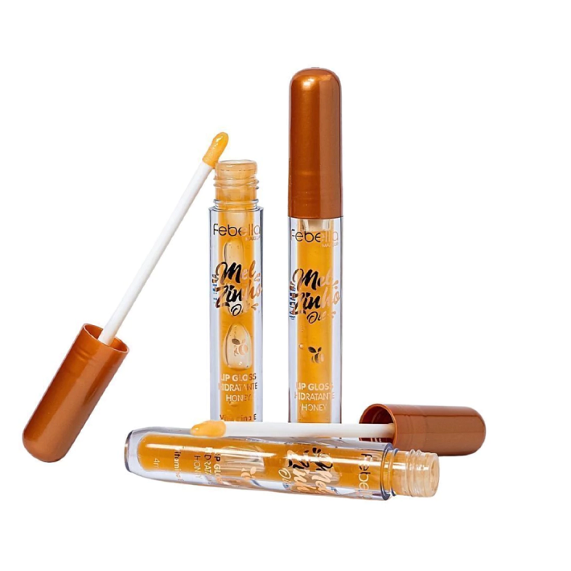 Descrição: O Lip Gloss Melzinho Oil da Febella é um lip oil hidratante com efeito "mágico", que reage ao pH dos lábios para entregar um tom rosinha natural, além de brilho e nutrição, com textura confortável, não pegajosa, e embalagem fofa, ideal para usar sozinho ou por cima do batom, deixando os lábios macios, hidratados e com um brilho saudável, com opções que podem ter partículas de brilho.