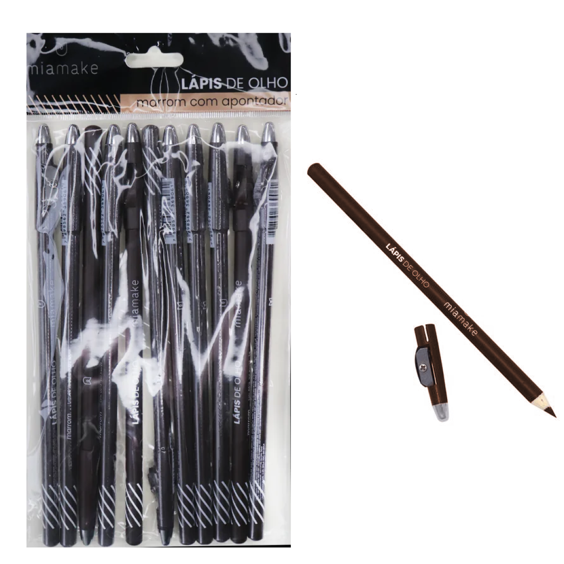 LÁPIS DE OLHO MARROM C/APONT MIA MAKE PCT 12 PÇS